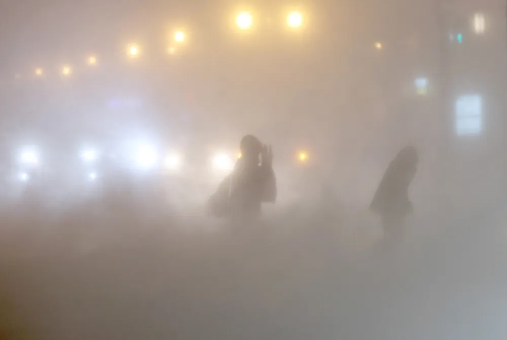 降り積もった雪が強風で巻き上げられ、視界が極度に悪化しました。